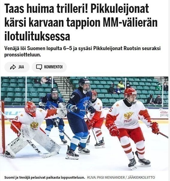 MTV: «Битва между Финляндией и Россией стала украшением чемпионата»