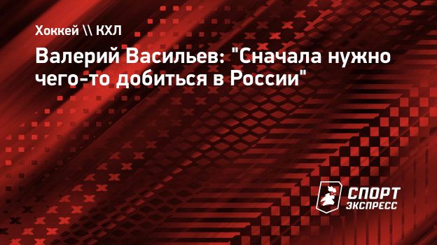 Валерий Васильев: "Сначала нужно чего-то добиться в России"