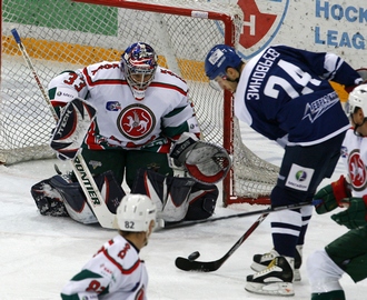 Этот гол стал мощным катализатором активности бело-голубых: в течение нескольких минут они обрушили на ворота Норрены шквал атак, с которыми, впрочем, финский голкипер успешно справлялся. Чаянек настолько был расстроен одним из таких эпизодов, что от досады врезал опекавшему его Медведеву. Защитник "Ак Барса" в долгу не остался, и в итоге оба отправились на две минуты остужать пыл на скамейку штрафников. А вскоре компанию динамовскому чеху составил Зиновьев. Вновь, однако, игра в большинстве - что 4 на 3, что 5 на 4, казанцам дивидендов не принесла. Разве что Хентунен дважды опасно бросил. Но уже спустя пять секунд после возвращения Зиновьева на лед его бывшие партнеры по звену не оставили Еремееву шансов - Морозов выдал филигранный пас, а Зарипов расстрелял голкипера в упор. |