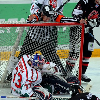 скорости толкнул Александрова, который въехал во вратаря у борта за воротами.