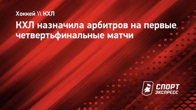 Список арбитров на первые матчи 1/4 финала Кубка Гагарина (19 - 21 марта):