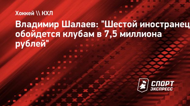 Владимир Шалаев: "Шестой иностранец обойдется клубам в 7,5 миллиона рублей"