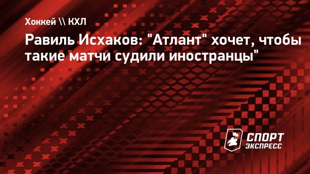 Равиль Исхаков: "Атлант" хочет, чтобы такие матчи судили иностранцы"