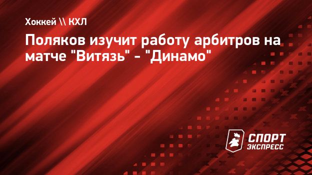 Поляков изучит работу арбитров на матче "Витязь" - "Динамо"