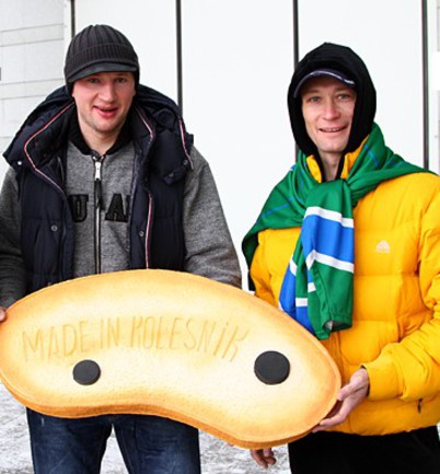 Болельщики "Салавата Юлаева" наградили вратаря уфимской команды Виталия Колесника, отстоявшего на ноль во вчерашнем матче с "Трактором". Сегодня голкиперу был вручен гигантский сухарь, сделанный вручную из материала, близкого к строительной пене. Очень похожий на настоящий, выкрашенный в хлебный цвет, внешне он практически не отличается от оригинала. В сухарь, символизирующий успех вратаря, сохранившего свои ворота в неприкосновенности, вмонтированы две шайбы и нанесена надпись "Made in Kolesnik", что в вольном переводе может означать: "Сделано Колесником".