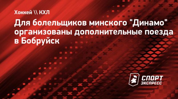 В преддверии домашних матчей плей-офф, которые минское "Динамо" проведет в Бобруйске, руководство клуба обратилось к Белорусской железной дороге с просьбой организовать дополнительные ускоренные дизель-поезда для удобной и доступной по стоимости доставки болельщиков на игры команды. Утверждено решение о запуске двух дополнительных поездов по маршруту Минск (ст. Институт культуры) - ст. Березина - Минск без остановок. Напомним, третьего и четвертого марта "зубры" примут в Бобруйске московское "Динамо".