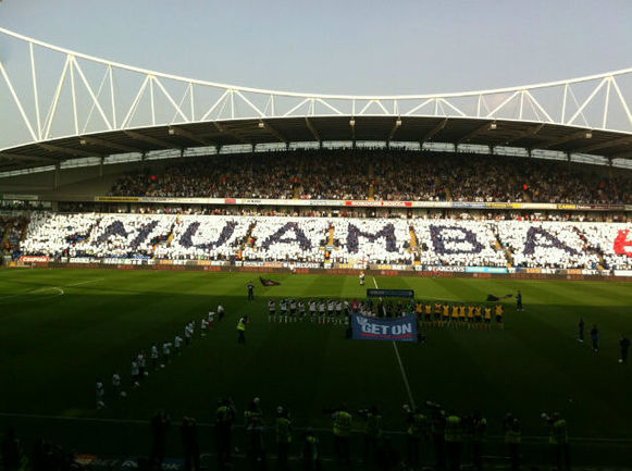 Болельщики "Болтона" во время сегодняшнего матча 30-го тура премьер-лиги с "Блэкберном" выразили свою поддержку хавбеку Фабрису Муамба, который не так давно во время игры с "Тоттенхэмом" перенес сердечный приступ. Фаната "Уондерерс" устроили красочный перфоманс, выложив имя полузащитника на одной из трибун стадиона.