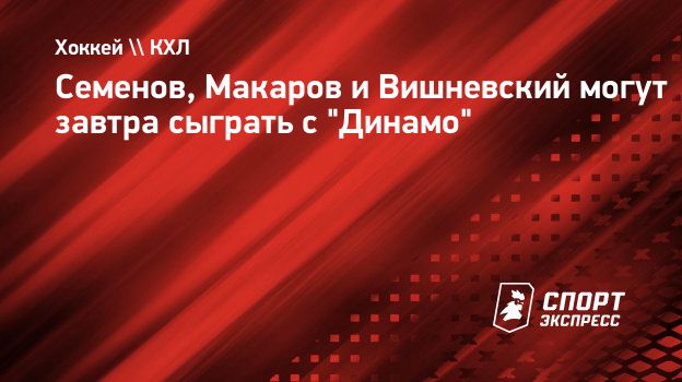Таким образом, Макаров, Вишневский и Семенов могут выйти на лед уже в пятницу во втором матче серии с "Динамо". (Владимир ЮРИН)