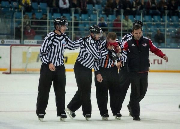 У арбитра матча "Автомобилист" - "Слован" диагностирован открытый перелом костей носа