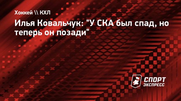 Илья Ковальчук: "У СКА был спад, но теперь он позади"