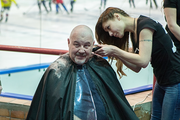 Генеральный менеджер "Сибири" Кирилл Фастовский сдержал обещание, данное болельщикам перед сезоном, и побрился наголо. Руководитель пообещал пойти на это, если "Сибирь" выйдет во второй раунд Кубка Гагарина. Фото photo.khl.ru