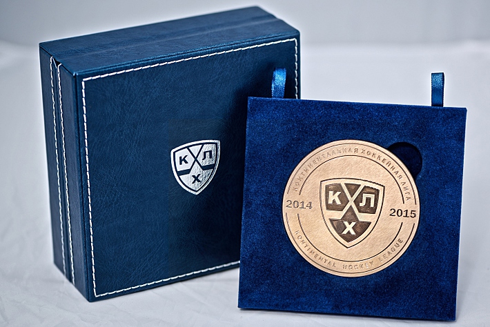 Медали призерам КХЛ по итогам сезона-2014/15 имеют инновационный дизайн и будут вручаться хоккеистам в специальных коробочках, а не вешаться на шею с помощью ленты, информирует пресс-служба лиги. Все 200 медалей будут изготовлены до 10 апреля. Они изготавливаются из бронзы, затем покрываются золотом или серебром, а также лаком. Еще одним инновационным решением является цветная мозаика по металлу, которой украшается изображение хоккеиста.