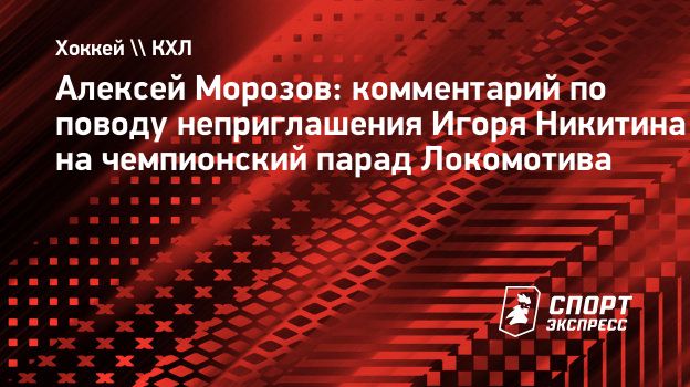 Президент Континентальной хоккейной лиги (КХЛ) Алексей Морозов прокомментировал решение не приглашать бывшего главного тренера «Локомотива» Игоря Никитина на чемпионский парад ярославской команды.