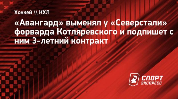 «Авангард» выменял у «Северстали» форварда Котляревского и подпишет с ним 3-летний контракт