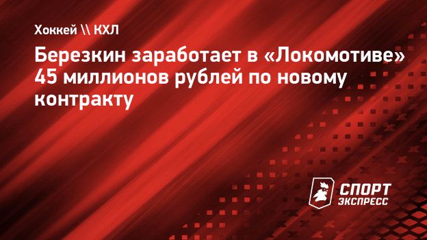 Березкин заработает в «Локомотиве» 45 миллионов рублей по новому контракту