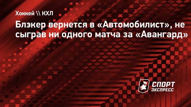 Блэкер вернется в «Автомобилист», не сыграв ни одного матча за «Авангард»