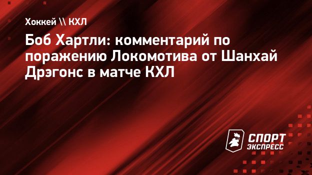 Главный тренер «Локомотива» Боб Хартли прокомментировал поражение от «Шанхай Дрэгонс» (3:4 ОТ) в матче FONBET чемпионата КХЛ.