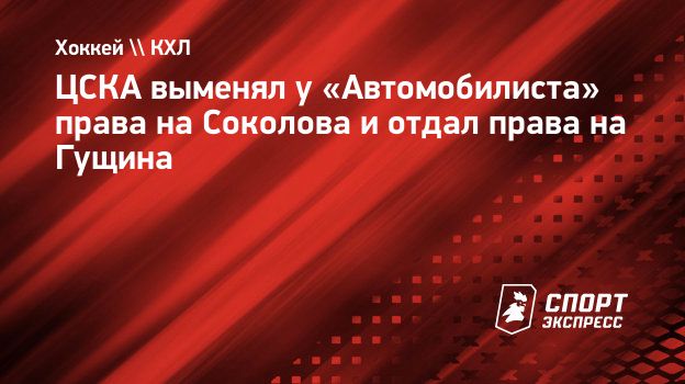 ЦСКА выменял у «Автомобилиста» права на Соколова и отдал права на Гущина