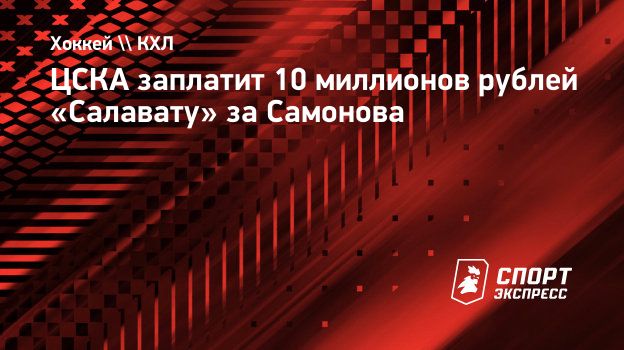 По данным «СЭ», сумма денежной компенсации, которую ЦСКА выплатит «Салавату Юлаеву» за голкипера Александра Самонова, составит 10 миллионов рублей. Столько же составит и зарплата нового вратаря уфимского клуба Ильи Коновалова.