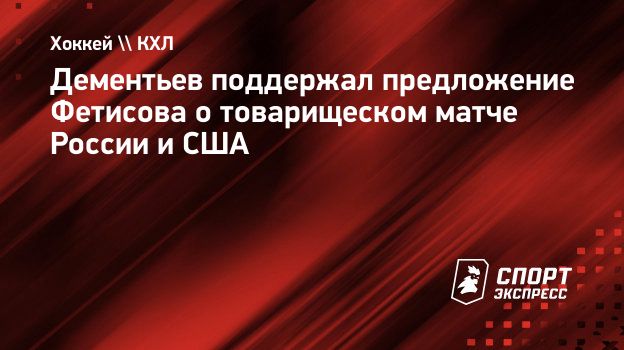 Хоккейный агент Алексей Дементьев оценил предложение Вячеслава Фетисова о проведении товарищеского матча сборных России и США по хоккею.