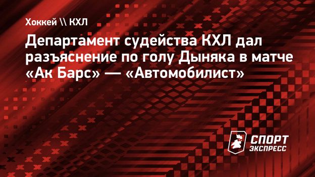 На сайте КХЛ появилось разъяснение Департамента судейства по голу нападающего «Ак Барса» Никиты Дыняка в шестом матче серии первого раунда Кубка Гагарина против «Автомобилиста» (5:1).