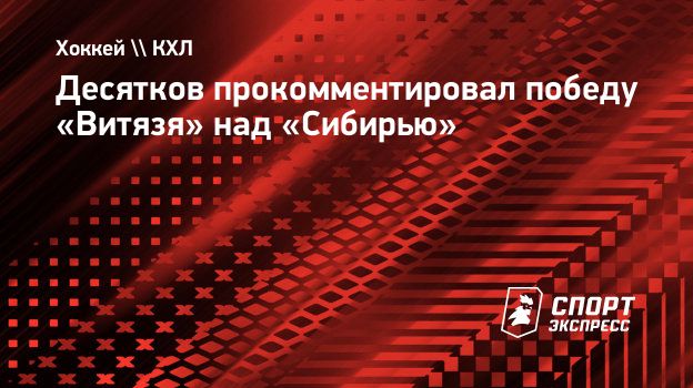 Десятков — о победе над «Сибирью»: «Витязь» провел два хороших периода, близких к идеальным»