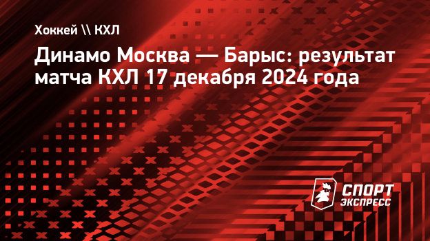 «Динамо» (Москва) — «Барыс» (Астана) — 0:2 (0:0, 0:1, 0:1)