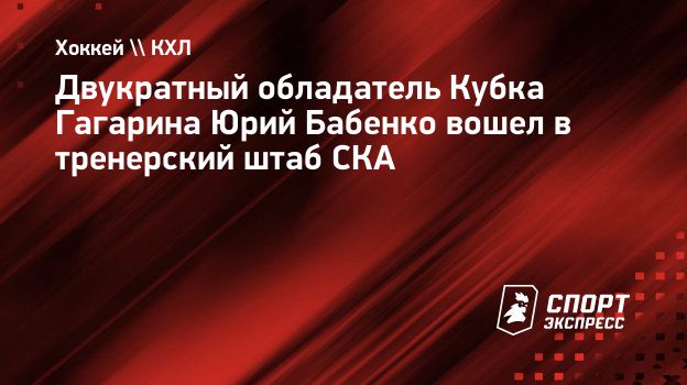 Тренерский штаб СКА пополнил двукратный обладатель Кубка Гагарина Юрий Бабенко, сообщает пресс-служба клуба.