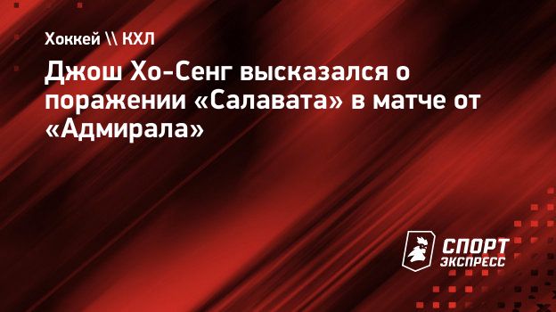 Нападающий «Салавата Юлаева» Джош Хо-Сенг в комментарии для «СЭ» высказался о поражении своей команды в стартовом матче первого раунда плей-офф КХЛ от «Адмирала» (1:2 ОТ).