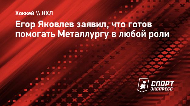 Защитник магнитогорского «Металлурга» Егор Яковлев в эксклюзивном интервью «СЭ» заявил, что готов помогать команде в любой роли.