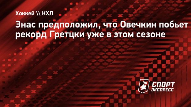 Американский форвард минского «Динамо» Сэм Энас предположил, что Александр Овечкин побьет рекорд Уэйна Гретцки уже в этом сезоне.