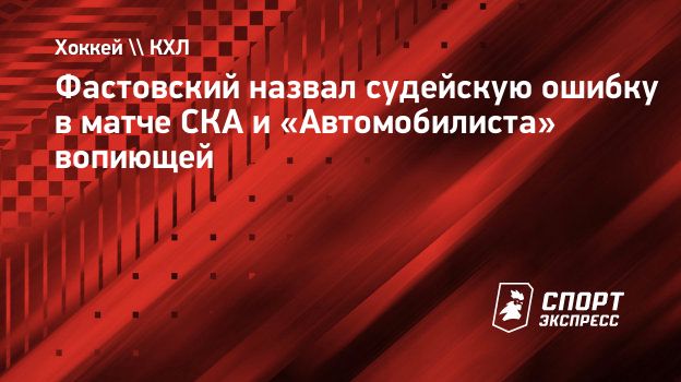 Фастовский назвал судейскую ошибку в матче СКА и «Автомобилиста» вопиющей