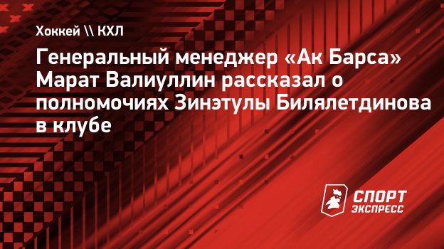 Генеральный менеджер «Ак Барса» Марат Валиуллин в интервью «СЭ» рассказал о полномочиях Зинэтулы Билялетдинова, которого назначили советником исполнительного директора казанского клуба по хоккейной вертикали.