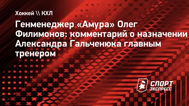 Генеральный менеджер «Амура» Олег Филимонов в интервью «СЭ» прокомментировал назначение Александра Гальченюка главный тренером и взаимоотношения в команде.