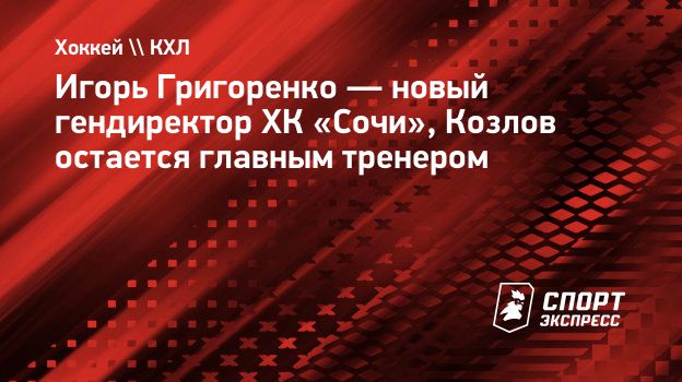 Игорь Григоренко — новый гендиректор ХК «Сочи», Козлов остается главным тренером