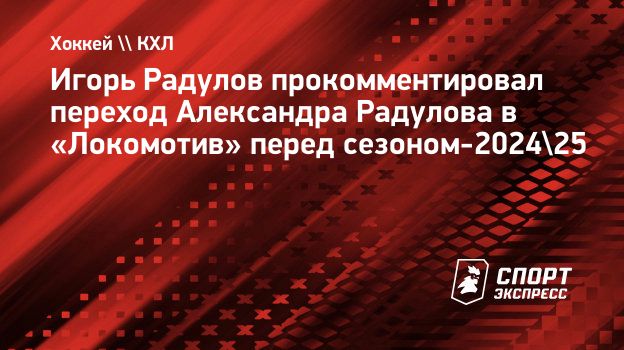Экс-хоккеист Игорь Радулов в интервью «СЭ» прокомментировал переход своего брата Александра Радулова в «Локомотив» перед сезоном-2024/25.