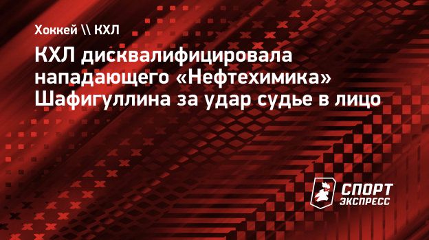 «На основании представленных материалов принято решение оставить без изменений наказание, наложенное на нападающего «Нефтехимика» Булата Шафигуллина по п. 1.27 ст. 29 дисциплинарного регламента КХЛ (намеренно применяет физическую силу в любой форме в отношении судьи), — дисквалифицировать на один матч и подвергнуть денежному штрафу», — говорится в решении КХЛ.