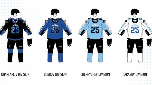 «Дивизион Тарасова сыграет в белых джерси, отражающих прозрачность морозного воздуха и хрустящего под ногами снега. Команда дивизиона Боброва выйдет в форме глубокого синего цвета — это отсылка ко льдам замерзших рек и озер Сибири. Дивизион Харламова примерит джерси черного цвета, который ассоциируется с долгими зимними ночами. Сборная дивизиона Чернышева выступит в светло-голубой форме — это цвет ясного зимнего неба над Сибирью», — говорится в сообщении пресс-службы КХЛ.