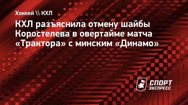 Департамент судейства КХЛ разъяснил незасчитанный гол форварда «Трактора» Никиты Коростелева в овертайме второго матча четвертьфинальной серии Кубка Гагарина против минского «Динамо».
