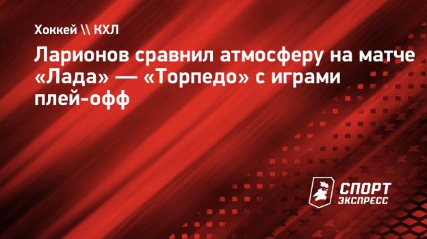 Ларионов сравнил атмосферу на матче «Лада» — «Торпедо» с играми плей-офф