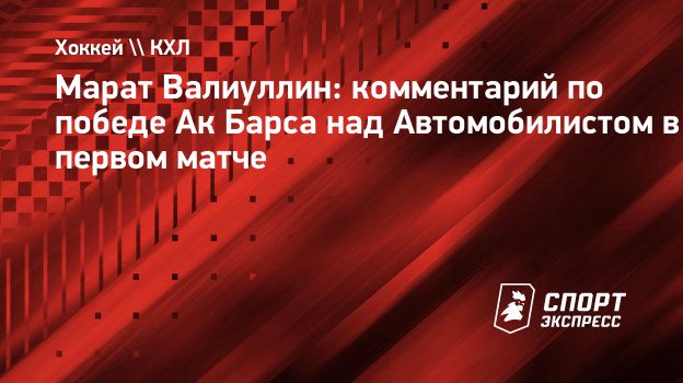 Генеральный менеджер «Ак Барса» Марат Валиуллин в интервью «СЭ» поделился эмоциями после победы над «Автомобилистом» (4:1) в первом матче первого раунда плей-офф.