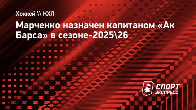 Марченко назначен капитаном «Ак Барса» в сезоне-2025/26