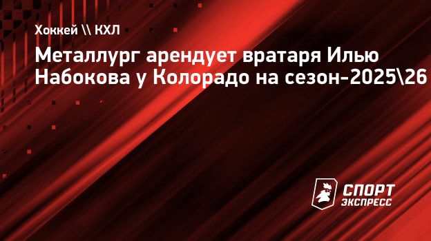 Вратарь «Металлурга» Илья Набоков будет выступать за «Магнитку» на правах аренды в сезоне-2025/26. Ранее об этом сообщал «СЭ».
