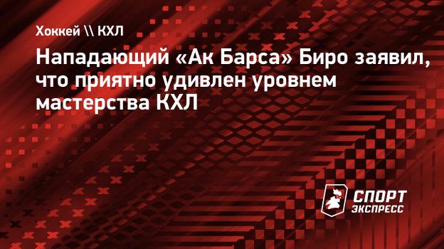 Нападающий «Ак Барса» Биро заявил, что приятно удивлен уровнем мастерства КХЛ