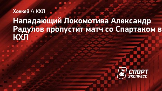 Нападающий «Локомотива» Александр Радулов не сыграет в матче FONBET чемпионата КХЛ против «Спартака», сообщает пресс-служба ярославского клуба.