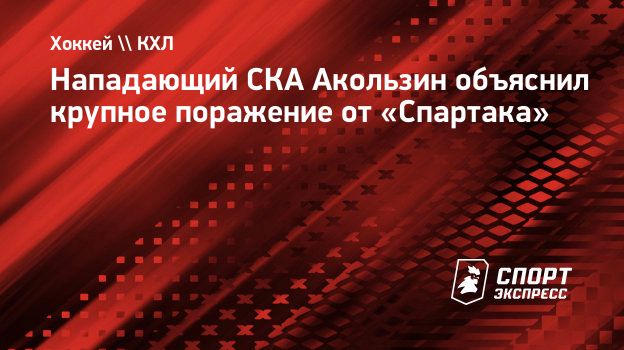 Нападающий СКА Павел Акользин прокомментировал «СЭ» поражение от «Спартака» (2:7) в матче FONBET Чемпионата КХЛ.