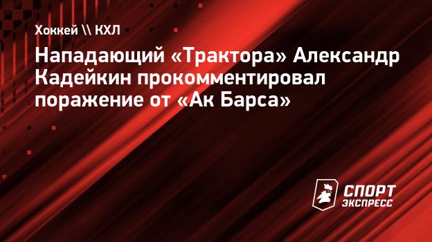 Нападающий «Трактора» Александр Кадейкин в интервью «СЭ» прокомментировал поражение от «Ак Барса» (3:5) в матче FONBET чемпионата КХЛ.
