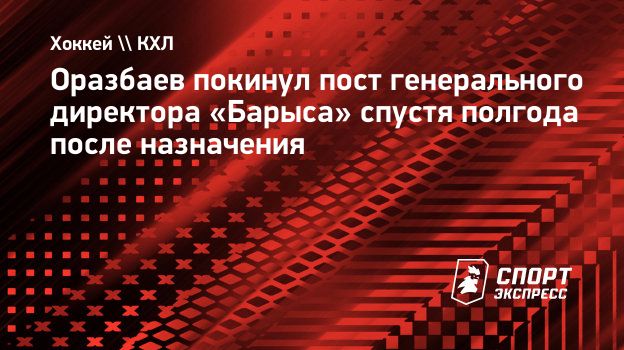Нурлан Оразбаев покинул пост генерального директора «Барыса», сообщается на сайте казахстанского клуба.