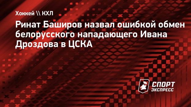 Генеральный директор «Салавата Юлаева» Ринат Баширов в эксклюзивном интервью «СЭ» назвал ошибкой обмен белорусского нападающего Ивана Дроздова в армейский клуб.