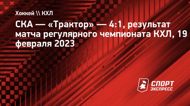 «Трактор» занимает 10-е место в турнирной таблице «Востока» с 66 очками. 21 февраля команда сыграт с минским «Динамо». СКА в этот же день примет «Куньлунь».